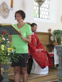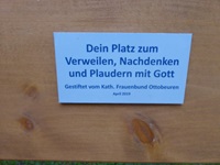 Eine Andacht zu Maria Geburt hielten wir in der Eldernkapelle mit Pfarrer Christoph Maria Kuen. Danach gingen wir alle zu der vom Frauenbund gestifteten Bank vor der Kapelle. Frau Brugglehner trug die Gedanken einer Bank vor. Im Anschluß daran fand die Weihung der Bank statt.