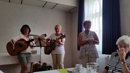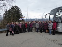 26 Frauen machten sich auf den Weg am 28. 6. um 7 Uhr. Frau Dillinger begrüßte alle Teilnehmerinnen und informierte über den Ablauf der Wallfahrt. Auf der großen Basilikatreppe wurde wie jedes Jahr ein Foto gemacht Das Thema der Wallfahrt: Berührung mit den Füßen, Worten, Händen, Augen.