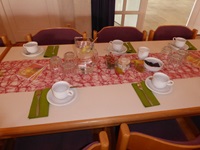 Um 8:15 Uhr fuhren ca.33 Frauen mit der Fa. Denifel nach Memhölz, Schönstatt auf dem Berg. Wir wurden sehr freundlich von Sr. Ingrid Maria empfangen. Zu Beginn trafen wir uns in der Hauskapelle. Wir baten um den Segen des hl. Geistes, der bestimmt ein Wort oder einen Satz für uns bereithält.