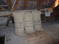 Mit Privat-PKWs fuhren 18 Teilnehmer nach Tannheim zur Graf Mühle. Persönlich vom Müller, Herrn Graf wurden wir begrüßt und durch die Mühle fachkundig geführt. Eine kleine Quelle im Wald führt ein kleines Bächlein ins Dorf. Schon seit vielen hundert Jahren treibt es im Dorf 2 Mühlen an. Im Fallenstock wird das Wasser auf das Mühlrad geleitet. Das große Wasserrad ist 127 Jahre alt und 7 m hoch. Das Wasserrad treibt die Mühle an. Über Zahnräder sog. Kammräder wird die Kraft auf dicke Antriebswellen weiter gegeben. Das Auflegen der Treibriemen ist eine heikle Aufgabe. Die Treibriemen und Riemenscheiben treiben die Mahlmaschinen an.